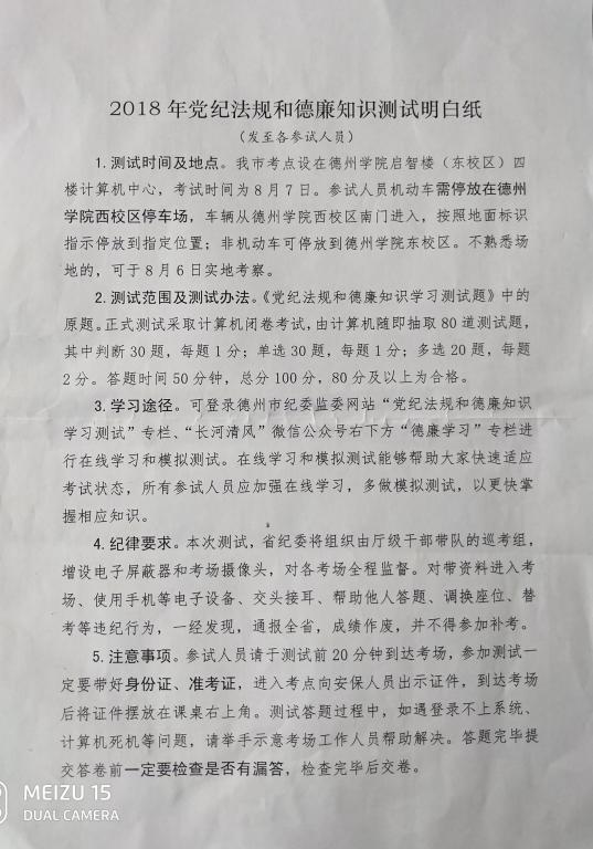 2018年党纪法规和德廉知识测试明白纸